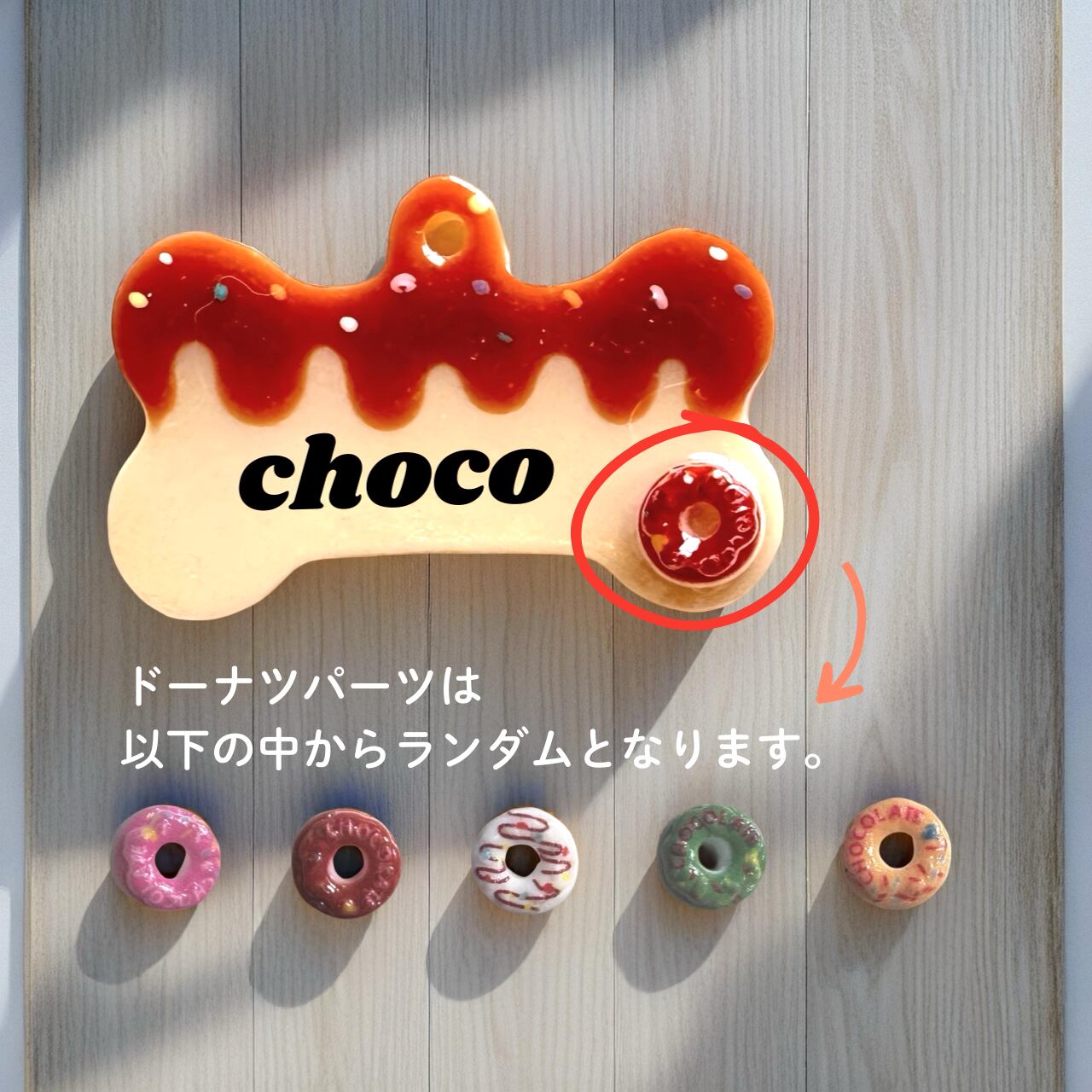 チョコレートがとろけるドーナツ柄の迷子札になります。