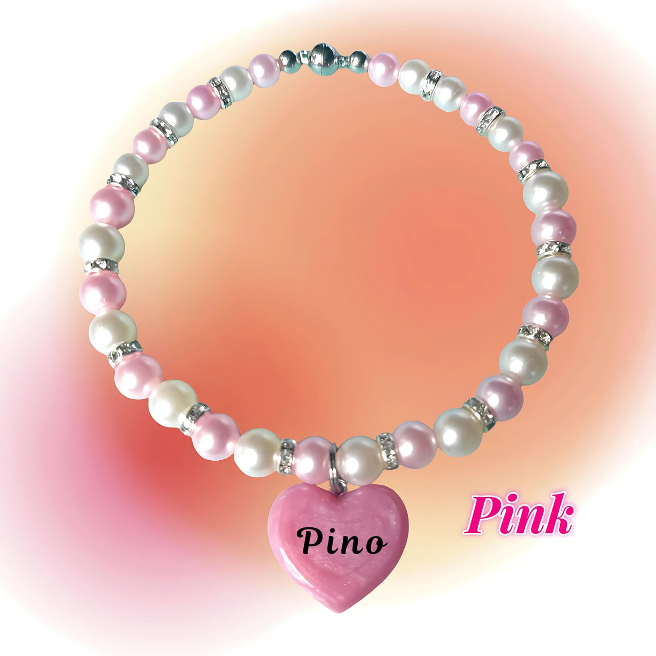薄ピンクパールとホワイトパールを使用した迷子札付きネックレスになります。