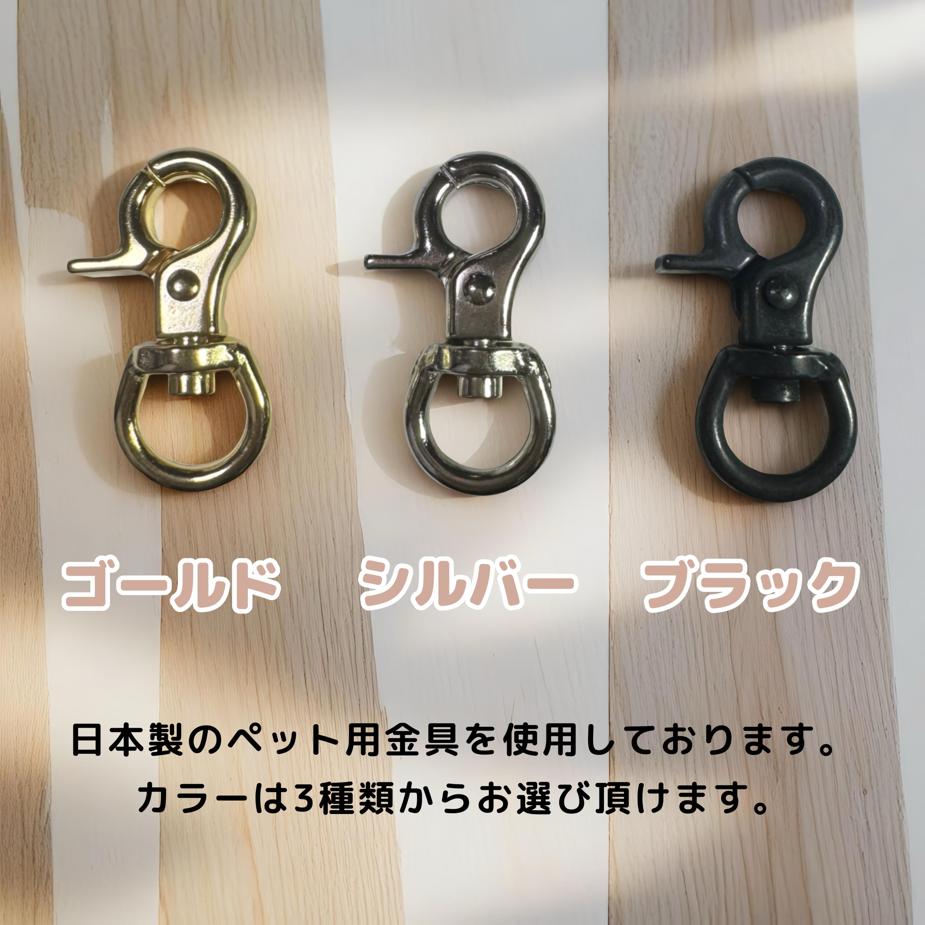金具には、日本製の丈夫なペット用金具を使用しておりますので、安心してご利用いただけます。